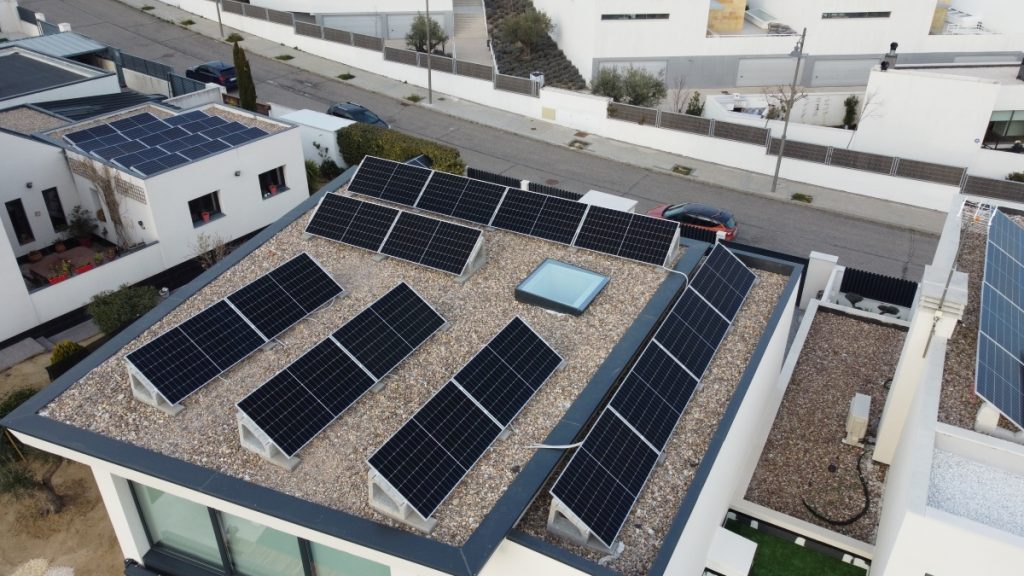 Instalación de autoconsumo de 15kWp, en vivienda de Pozuelo con aerotermia, vehículo eléctrico y piscina climatizada.